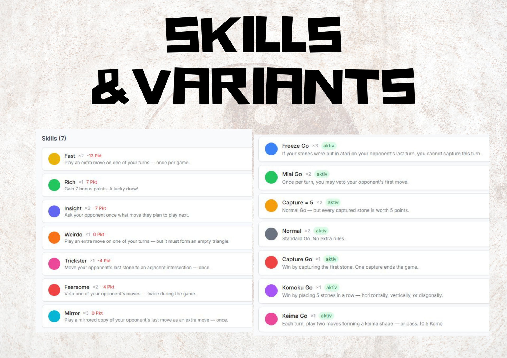 with 7 special Powers and 7 Go Variants.