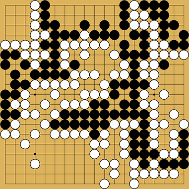 Unfortunatelly I think the review would be better suited for your opponent than it is for you. He/she suffered from a very common mistake we all did when we started on the big board, i.e. playing very locally while the opponent gets the rest of the board. You handeled it very well, not getting drawn into a petty fight while the board is wide open. Thus it is kind of hard to comment on your moves because black did not really try to do anything to challenge your position…