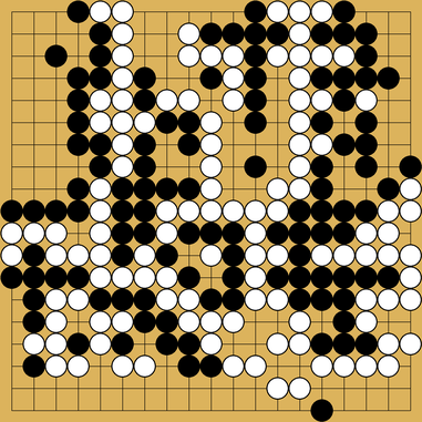 At this point it is unclear what happens in the center fight. In any case I would call F7 a key point for either side here. White would need to defend against E6, and black can look forward to attacking the G7 and H6 stones.
