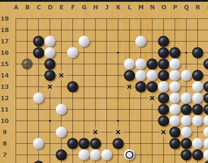 I gotta run but I also want to mention, white looks pretty overconcentrated in the top left in the beginning, might have been possible to attack that group and make some profits in the top.