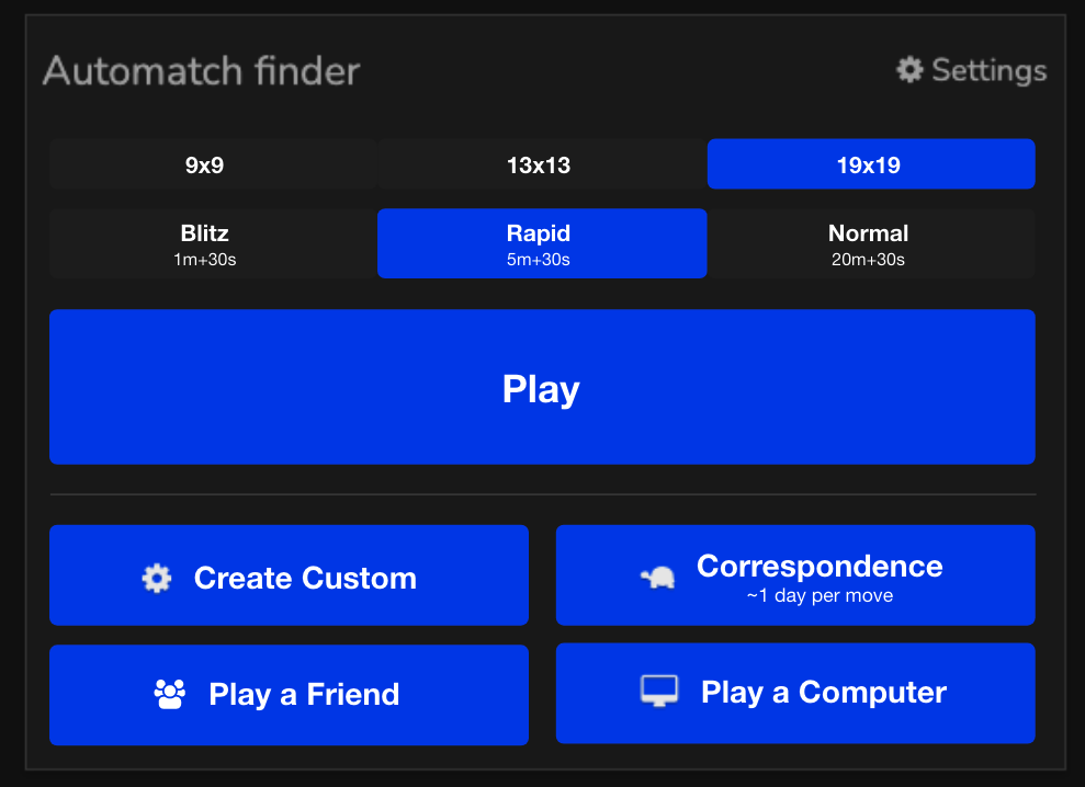 A word about the board size selection: while I think flexibility is good in allowing people to select multiple sizes while they search, we should follow a simpler and more typical UX of choosing one specific size while searching. I think that most people searching for a game know what size board they want to play and do not want to play other sizes. I have actually made the mistake of having multiple sizes selected and having to cancel out my game because I did not mean to play 9x9.
