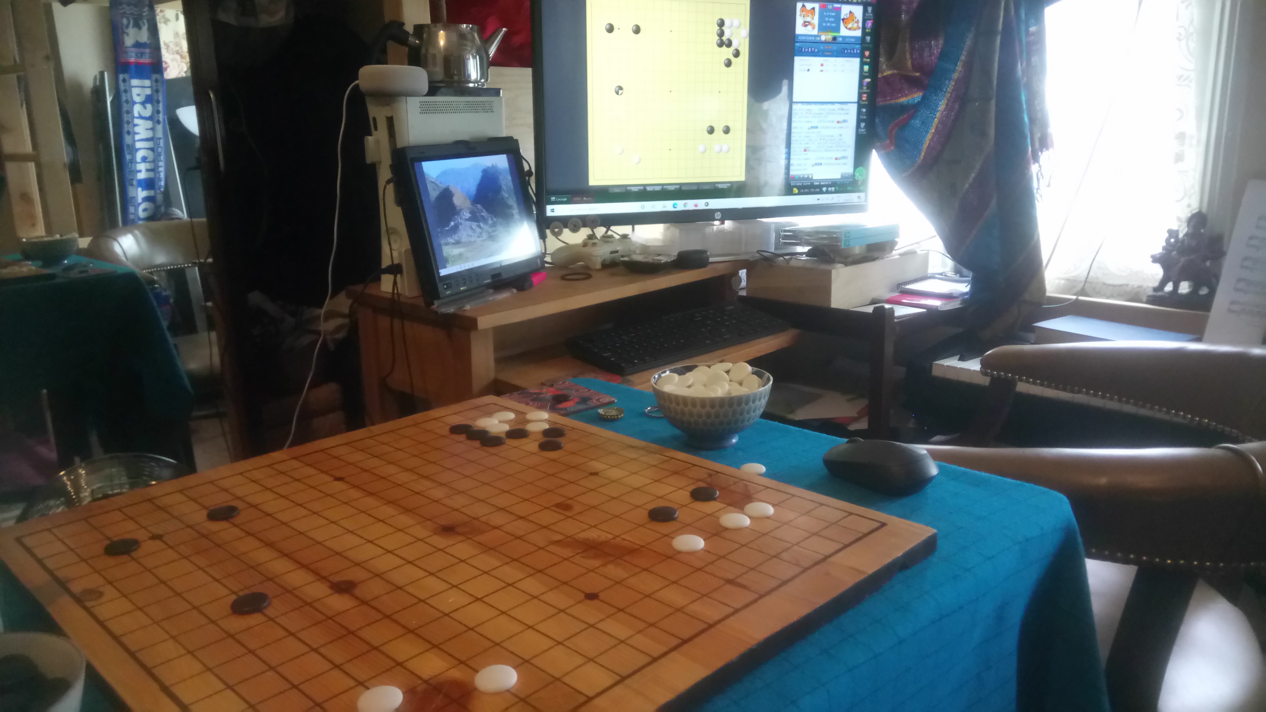 When your supposed to be working but find yourself playing Go online, then taking pictures of your setup so that you can share it with friends, then remember that there is a study/goban thread on ogs and you may as well share it there too. . . Ahhh procrastination at its finest. Happy Satarday everyone.