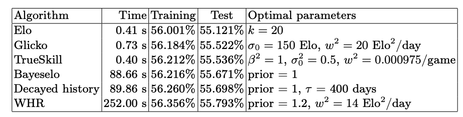 - Its metric for success is basically just the percentage of game outcomes correctly predicted by the assigned ranks