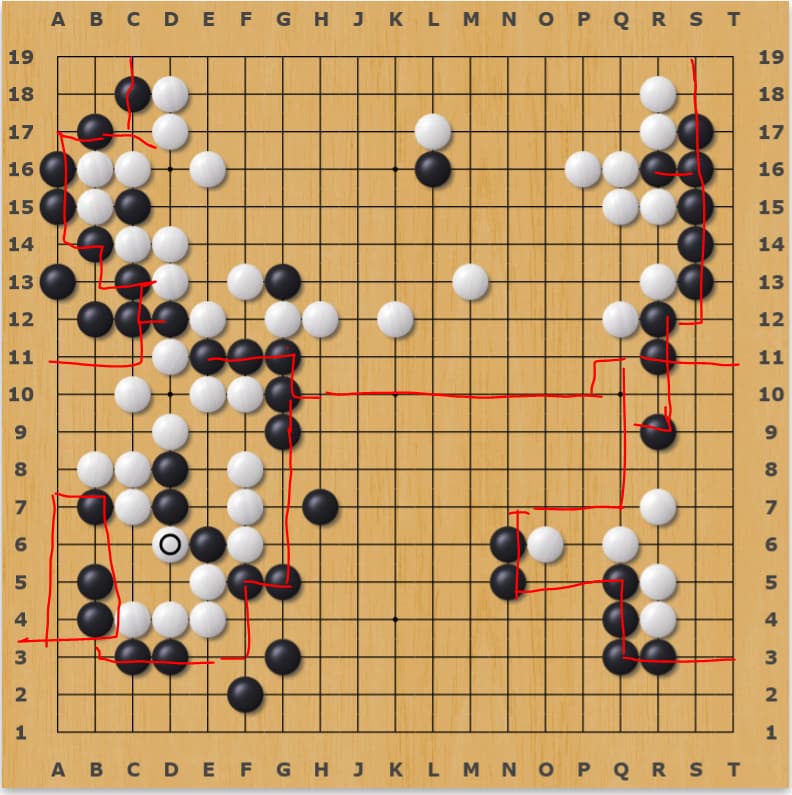 Just to point it out again, white’s D6 activated the double cut. Black might need to defend that now.