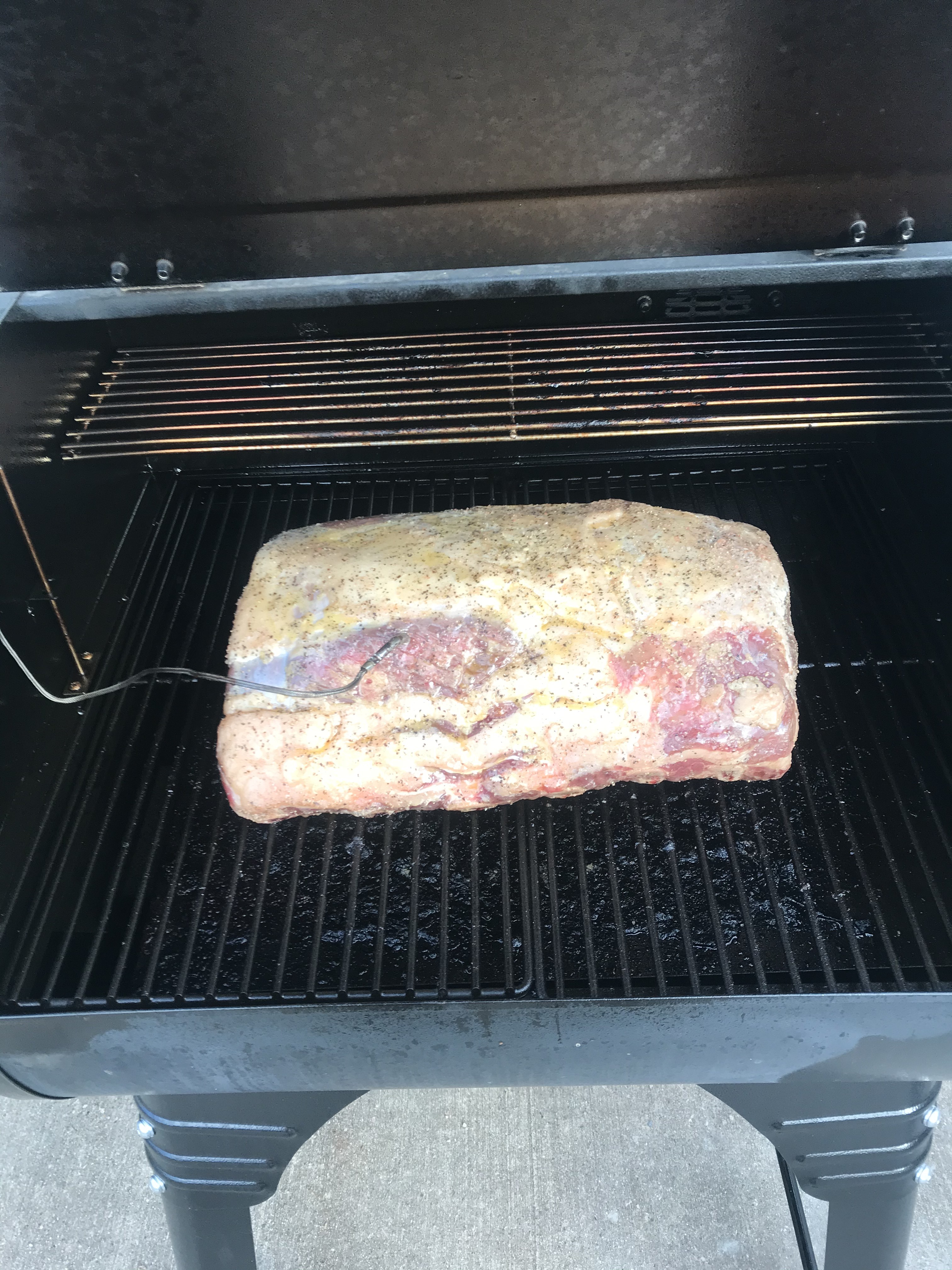 A little disappointed that at the lack of crust or bark (in bbq terms) on the standing rib roast. I will probably have to invest in a searing attachment on the smoker or incorporate a higher temp for a portion of the smoking. but it was smoked for a little over 5 hours at 225 F. (107 C) and after the first hour sprayed with a combo of apple cider vinegar, beef stock, and some beer every 30 min or so. for the rub I only used a generous coating of salt and pepper and then melted butter.