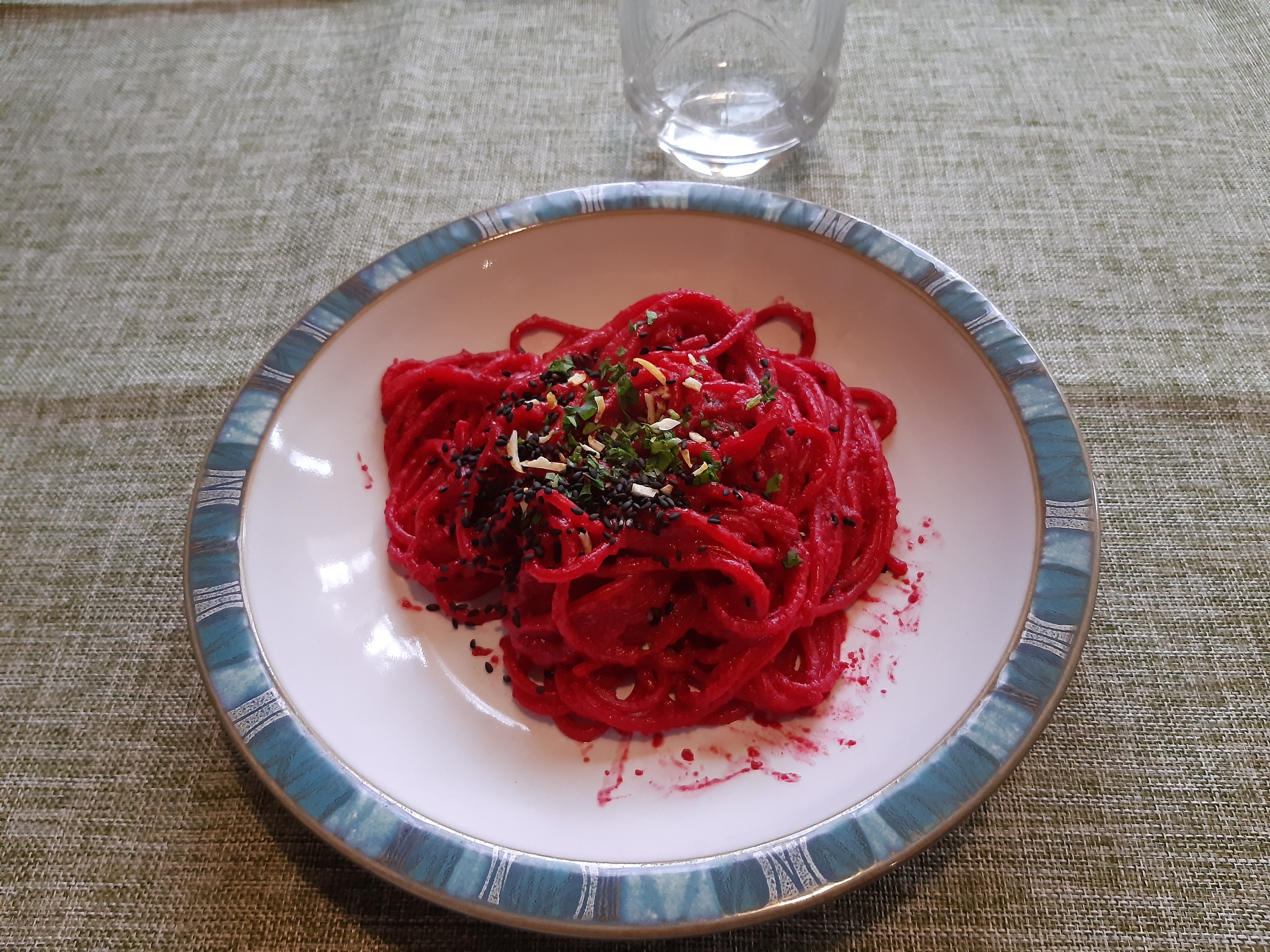 It was a new recipe for me and my family. My wife and one daughter loved it. The other daughter (the younger one) didn’t, despite I was telling her it was “spaghetti Dracula” mixed with blood.