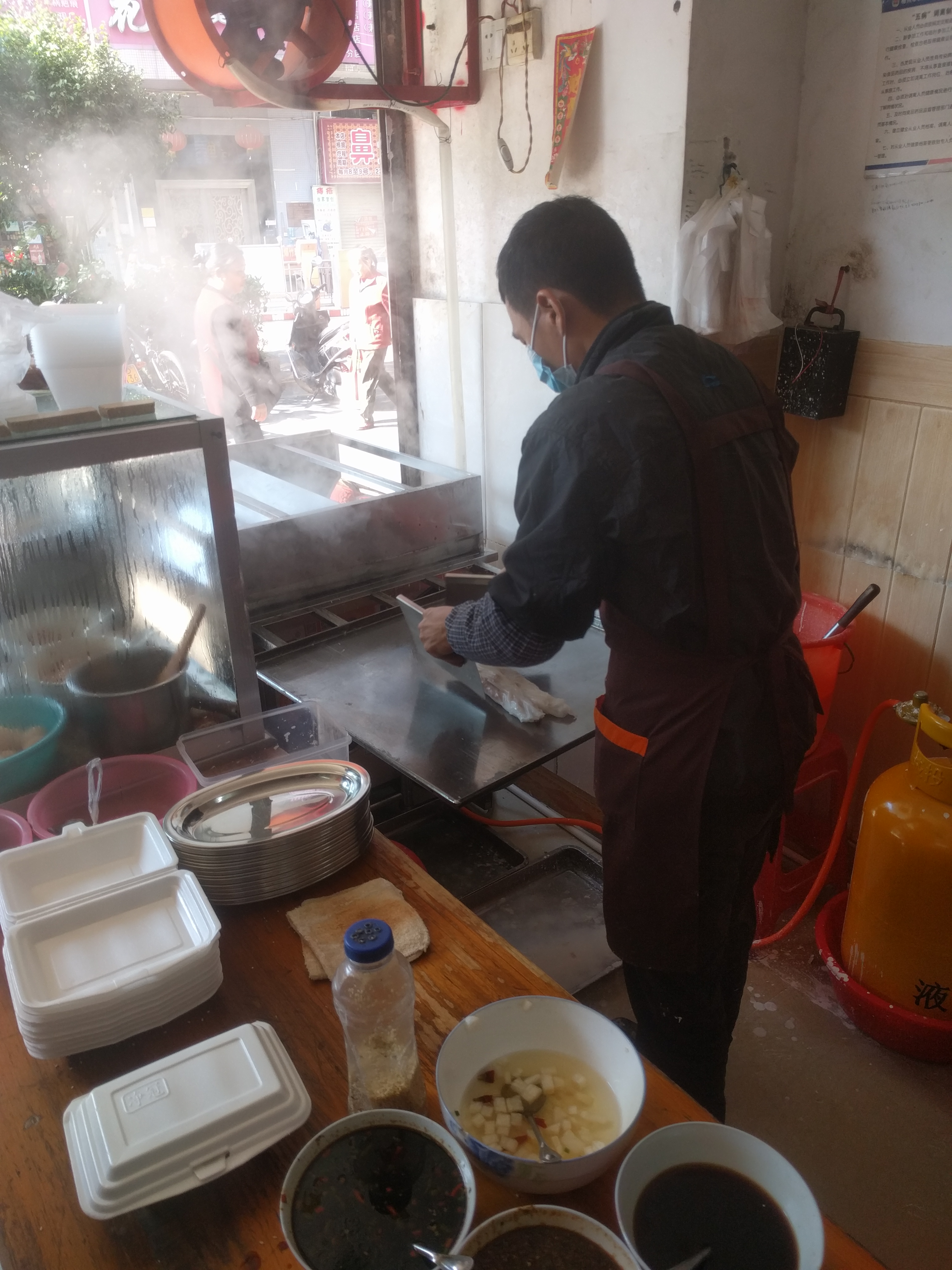Another breakfast of the south, the Chang fen. Varying from 0.5 to 1$ , depending what you want on it (egg, meat+mushroom…).