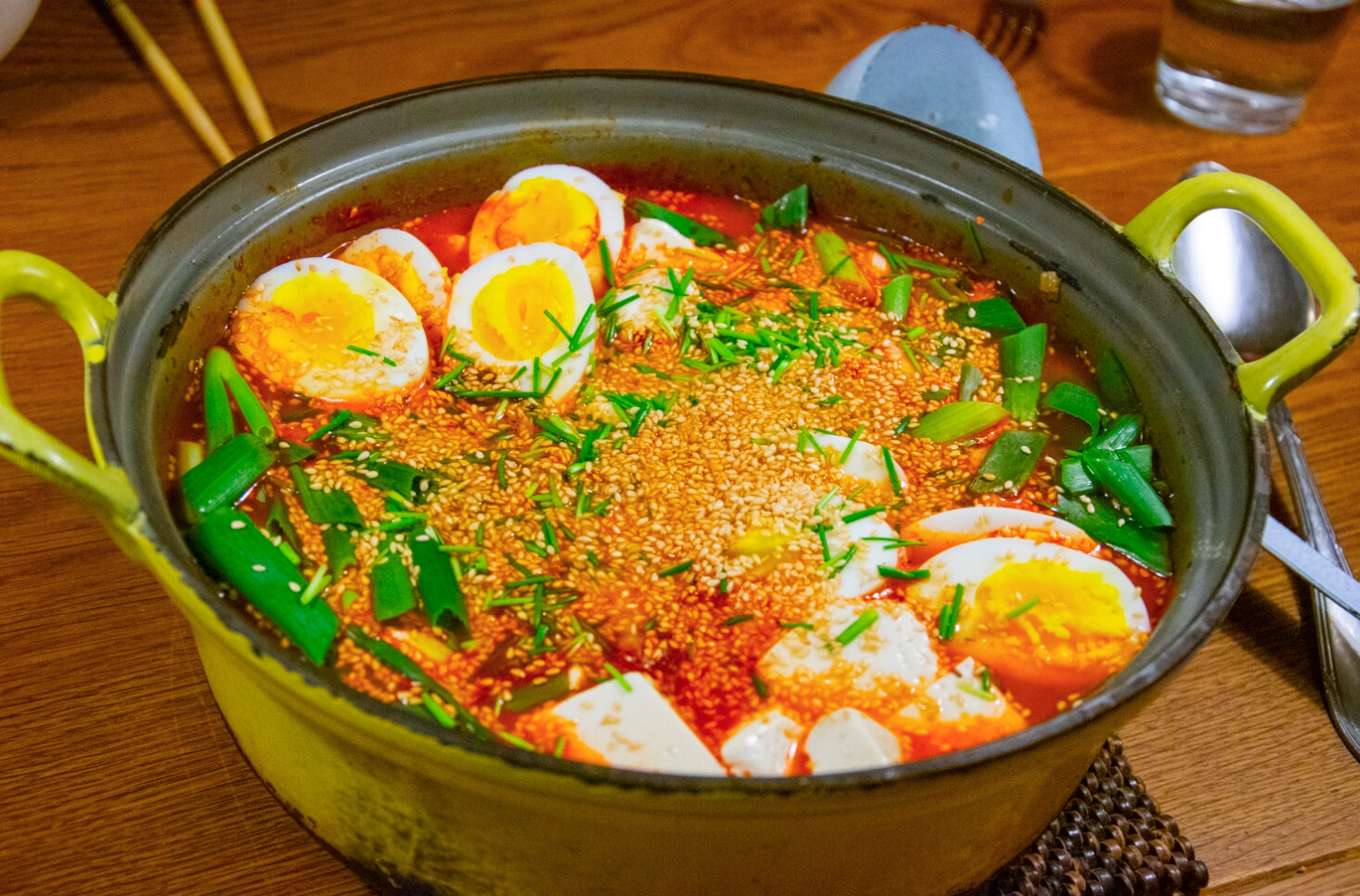 The kimchi I tried making turned out really sour (I blame myself, since I forgot to add the cup of sugar that was in the recipe), so I’ve made kimchi jjigae, since that’s apparently what one does with sour kimchi.