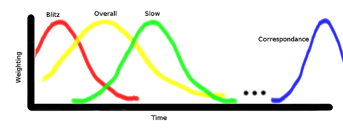IMO, only the “overall” rank needs to be shown. It’ll be less messy, and time dependant and board size dependant performance differences could be accounted for silently during rating. A 3D graph of rank vs time control and board size would be pretty cool though.