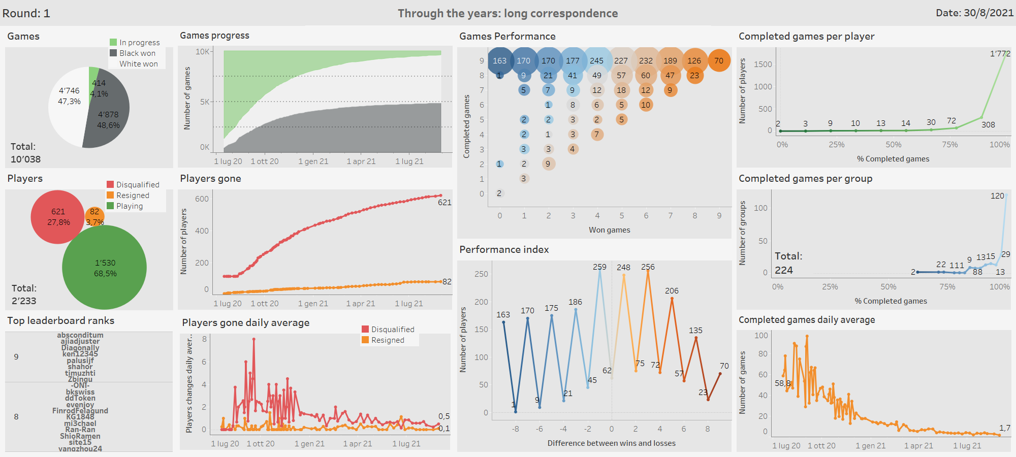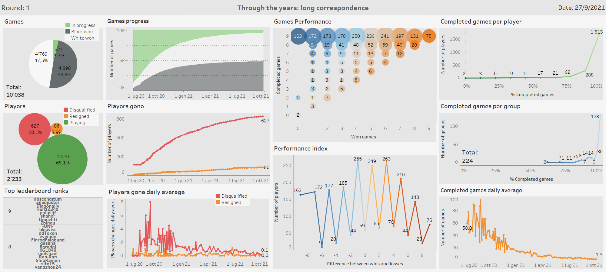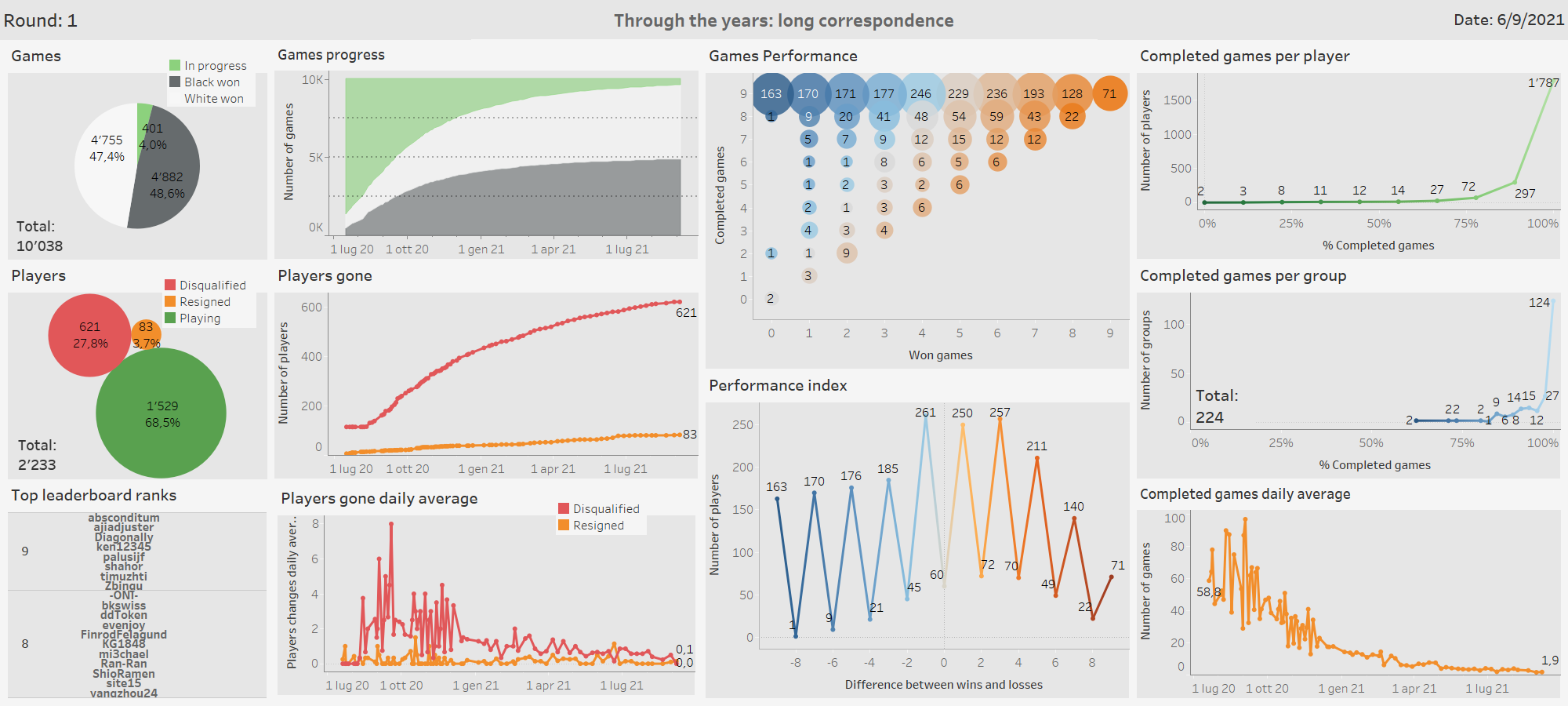 I didn’t notice groups with more than three slow players, so I decided to count players with 4 or more games left: there are 50 of them. We might call them slow with a reason.