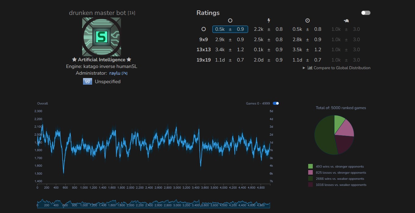 Consequently, if an 8k player goes against the bot and has to give handicap to the bot, they are probably never going to win, either.