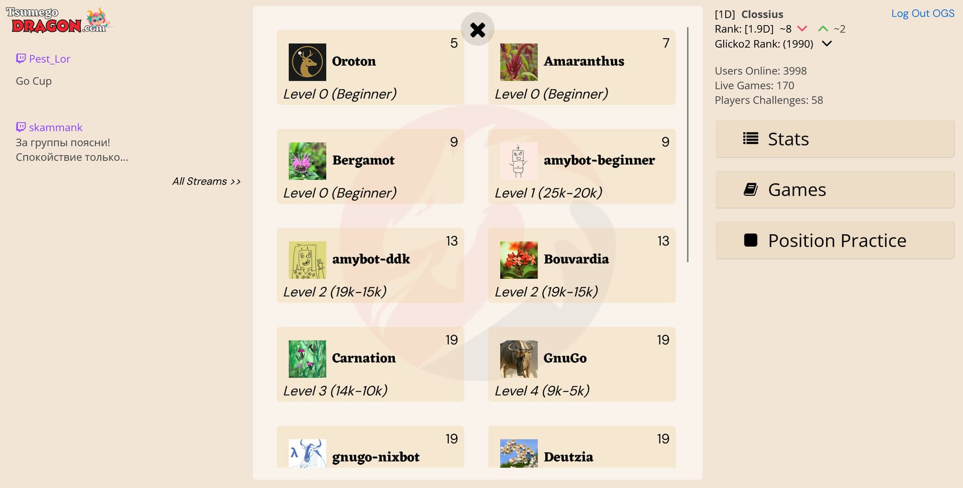 Position Practice is a unique feature that allows you to play a game with a preset starting position against bots in an unrated game. This will allow players to practice their opening against different level bots ranging from DDK to 9D.
