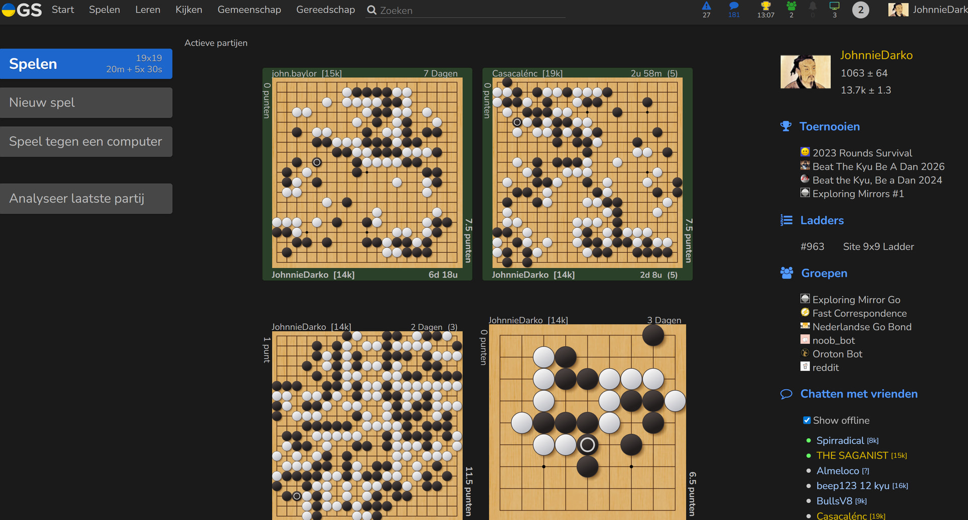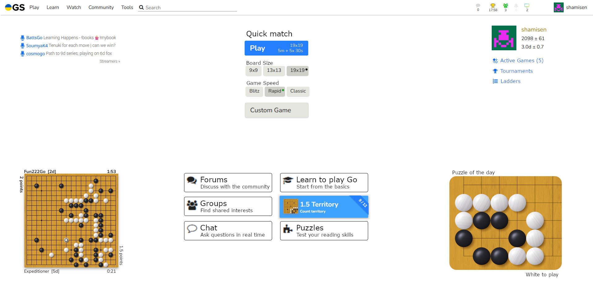 So in this redesign, the active games are removed from the homescreen and put on a second page. People who check OGS have a sense of urgency: “am I in time to play my move?”. So hiding that for all players, live and correspondence, behind an extra click makes it a less smooth experience.
