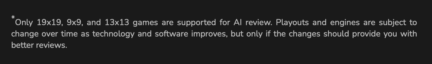 I have to imagine there is some bug or oversight involved in not allowing you to do an AI review on games you’ve added to your sfg library via the “add to library” feature. I don’t see any reason for this to not be allowed given that we can analyse uploaded sgf files.