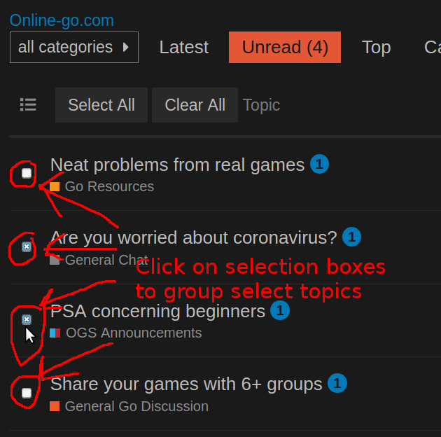 It will be convenient to be able to check and mark as read all the topics you don’t want to read.