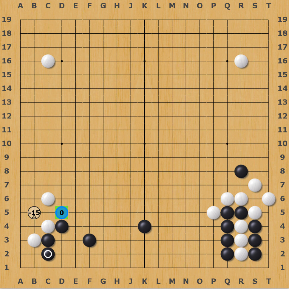 Also in this game, I had a gut feeling that I should play the âupwardâ tigerâs mouth on the left side, but I persuaded myself to play the âdownwardâ one. Turns out first bugcat was correct â now I look at the board again, I canât believe I played the --15 :D