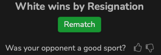Even if the opponent did all these, if the player lost very badly due to a big blunder, I’m not sure whether he will be in the mind to press the thumbs up button.