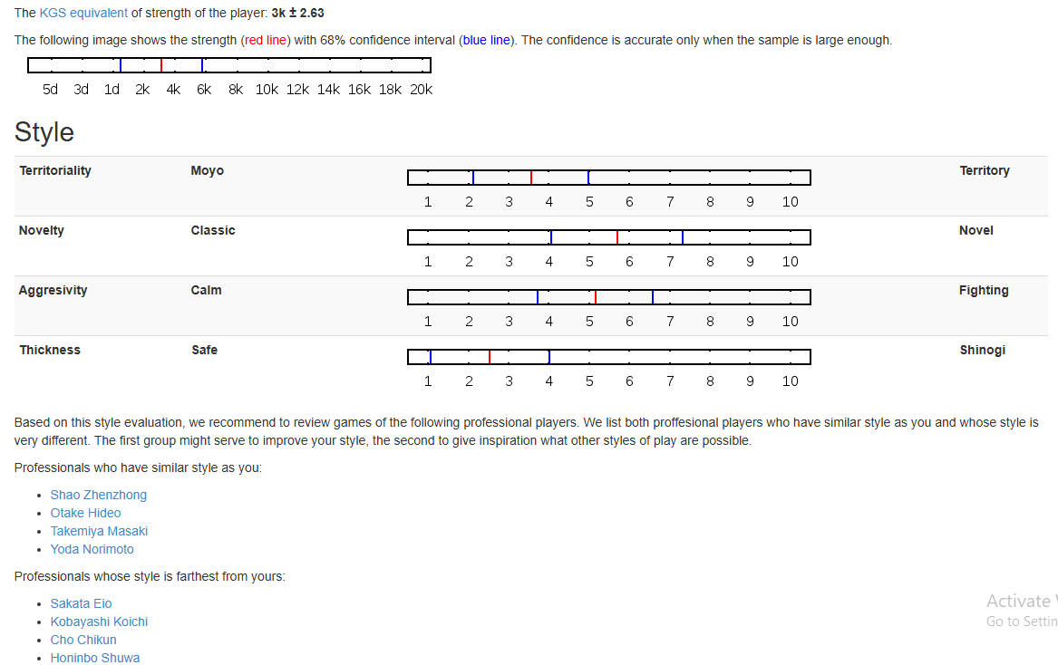 A couple of months ago, I was fortunate enough to be invited to a Discord group with a few other go players. They were all trying this thing out, where you upload a bunch of your SGF files to a program, and it would analyse your games and tell you about your games and what sort of style of play you had, using machine learning and whatever else… im not a tech bro nerd… not my thing, I’m more, anime and art, and whatever…just not my flavour of nerd… anyways, I got through the process of uploading like 19 games, because i couldnt be bothered with doing any more than that… and this was the result.