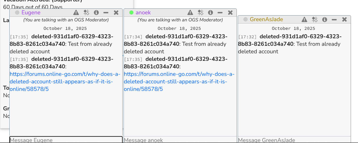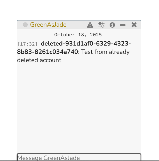 However, the deleted account still appears as being online, only now it has the name “deleted" and the profile can’t be accessed anymore (at least, by me).